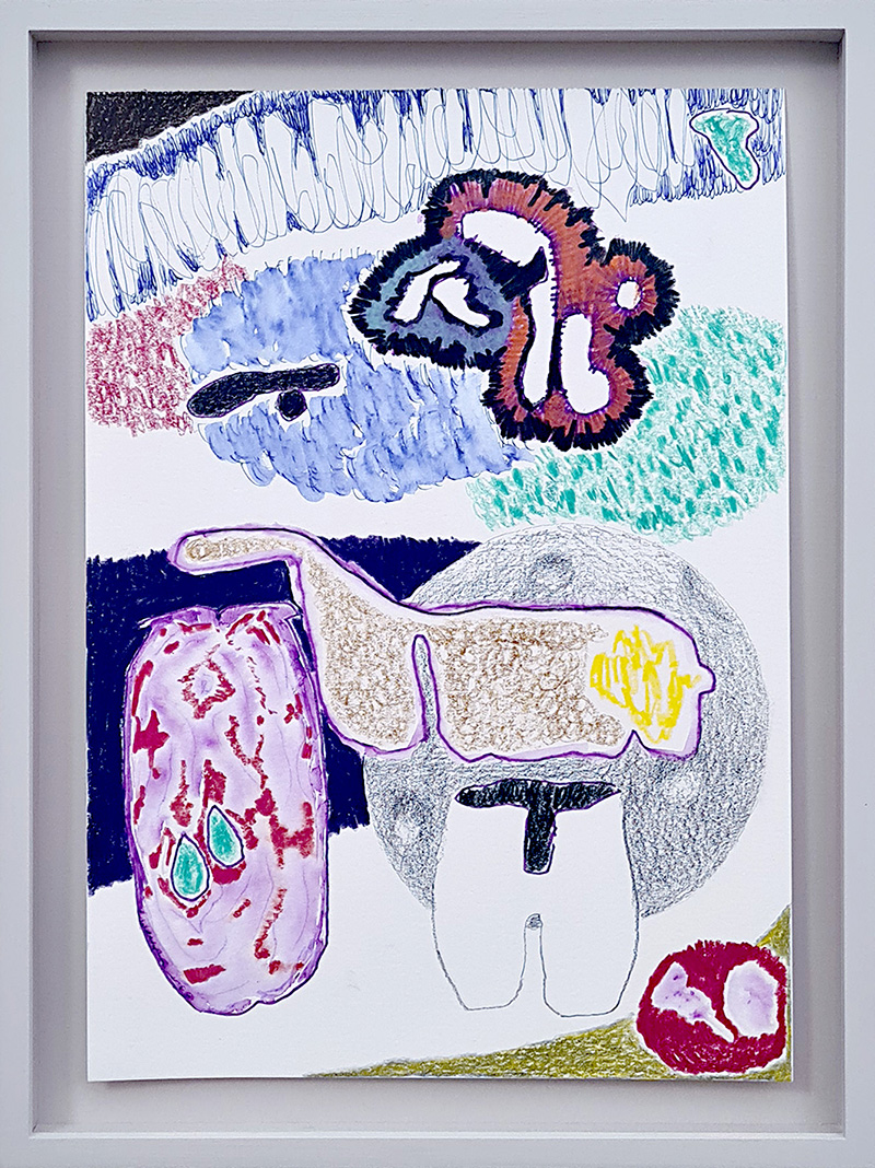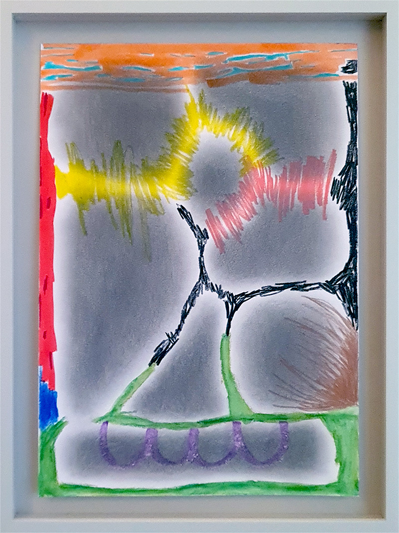 Selected Drawings 2024/2025 Each drawing approx. 21 x 30 cm Colored pencils, wax pastels, ink, ball pen, acrylics, collage and some other things on paper Handcrafted wooden frames with art glass Date: November 20, 2025 Category: Drawings Share: fb pn tb